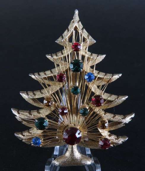 LOT 392 - Brooks Gold Tone Christmas Tree Brooch with Colored Rhinestones
