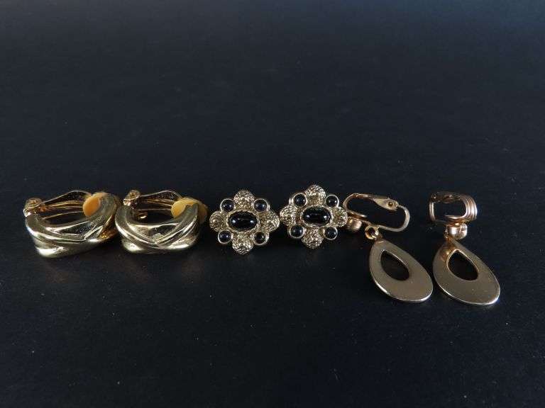 LOT 345 - 3 Pairs of Gold Tone Clip Earrings