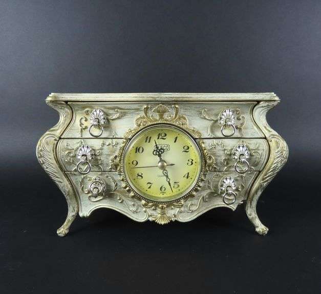LOT 98 - Hand Painted & Embellished Jewelry Box with Quartz Clock