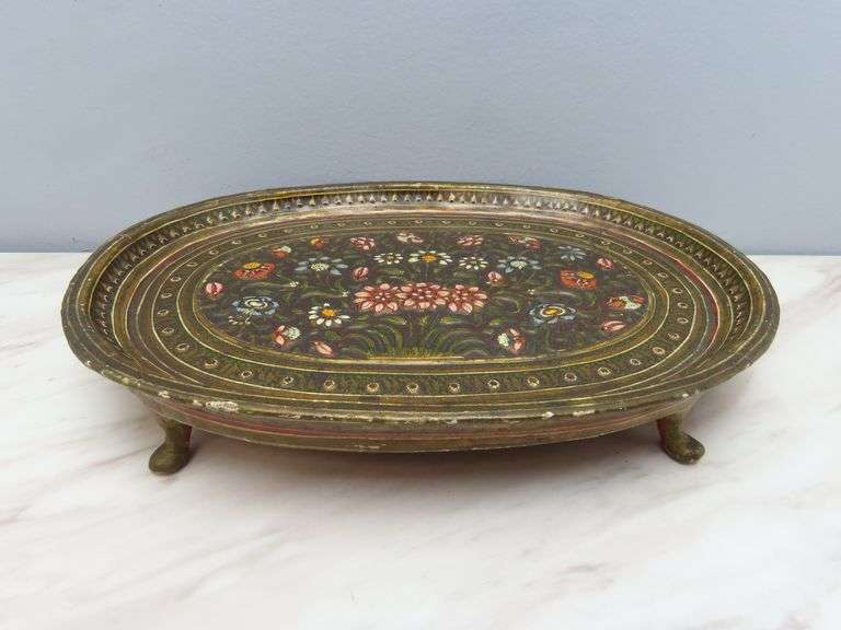 LOT 47 - Antique Wooden Painted Floral Footed Tray