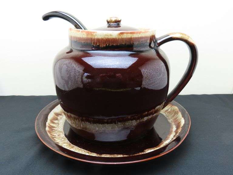 LOT 34 - "Gourmet Brown" Pfaltzgraff Soup Tureen with Lid, Ladle & Underplate