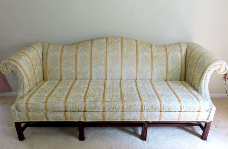 We did not notice any rips, stains or odors on this beautiful piece. This measures 84" x 32" x 32". High bidder is solely responsible for transport.