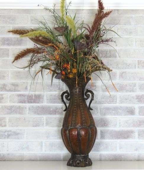 LOT 107 - Tall Metal Vase of Dried & Faux Flowers