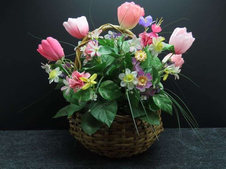 LOT 95 - Basket of Faux Silk Flowers