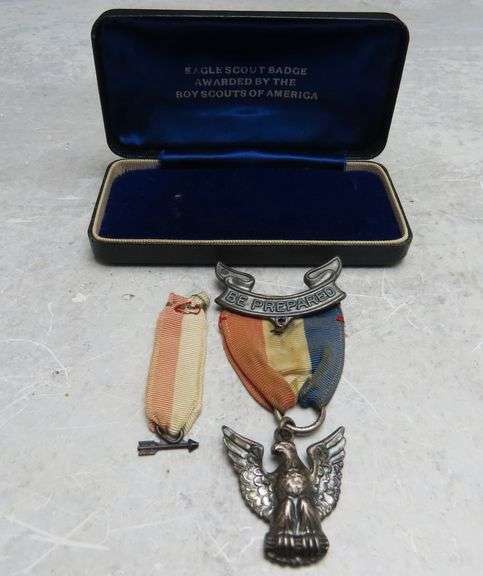 LOT 221 - Vintage Sterling Silver Eagle Scouts Recognition Medal in Case
