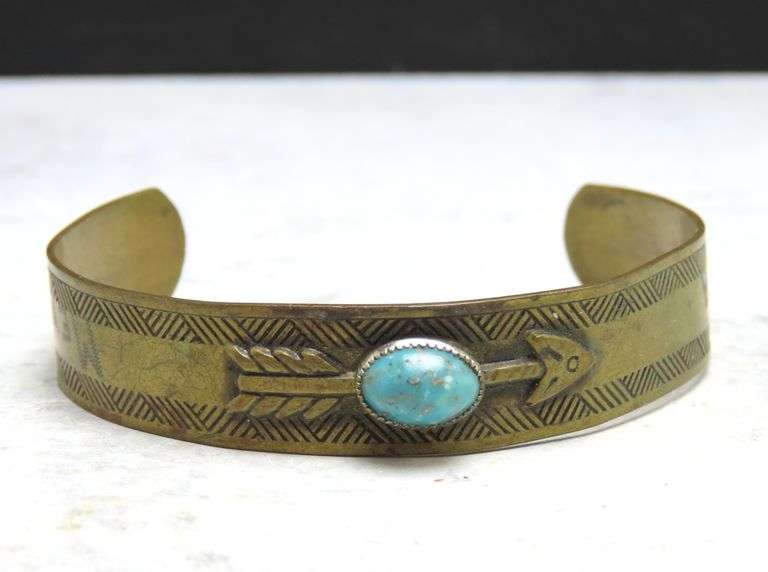 LOT 187 - Handcrafted Copper Open Cuff Bracelet with Turquoise