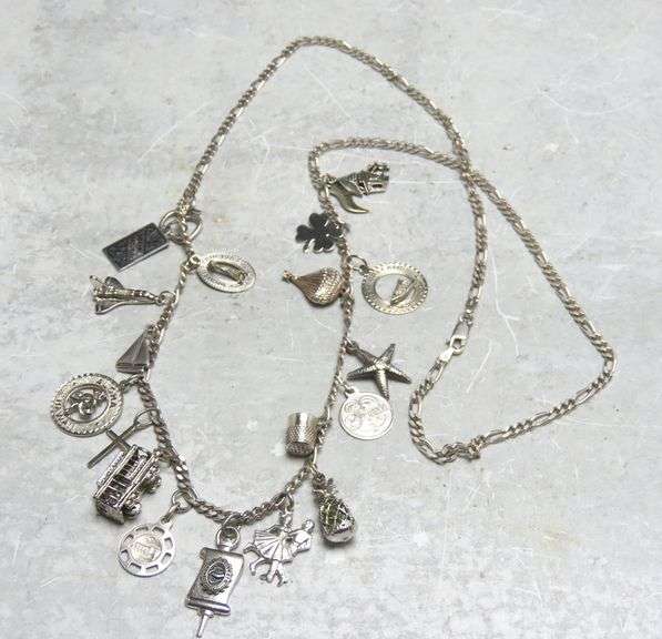 LOT 287 - 28" Sterling Silver Charm Necklace - 52.7g