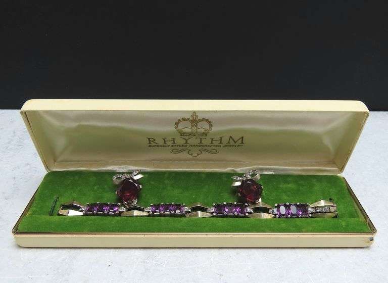 LOT 288 - Beautiful Sterling Silver Bracelet with Matching Clip Earrings