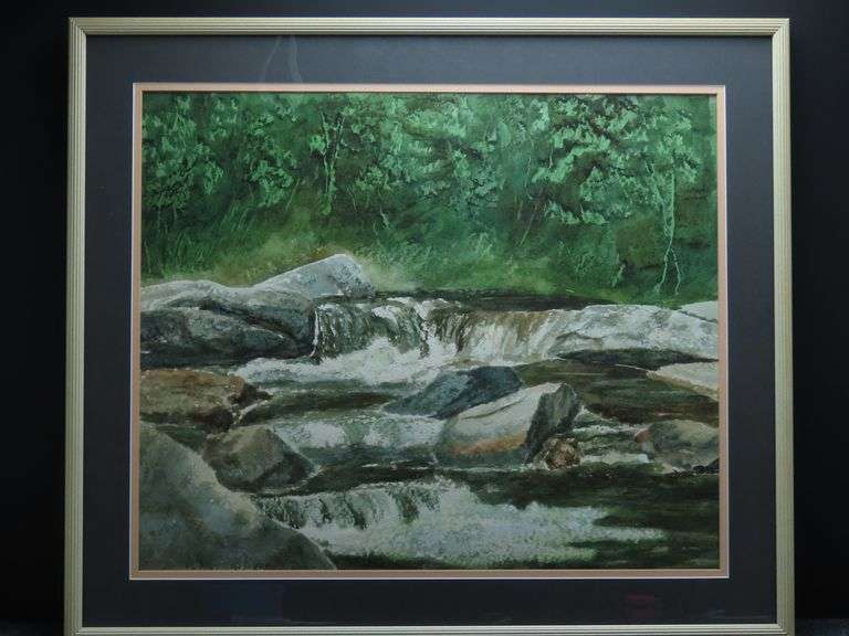 LOT 302 - Framed "Waterfall" Watercolor Signed MK Pippin