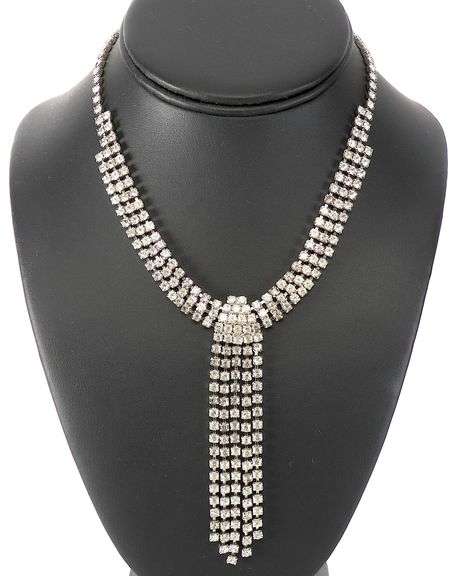 LOT 83 - Vintage 14" Silvertone Rhinestone Necklace With Fringe Drop Pendant