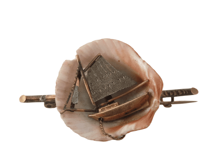 LOT 75 - Antique Shell / Boat Brooch with Early "C" Clasp - Pre 1890