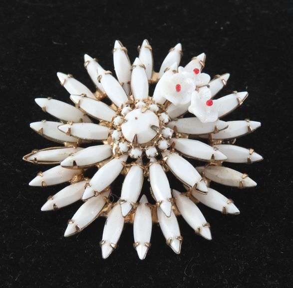 LOT 70 - Vintage Alice Caviness Milk Glass Pinwheel Brooch