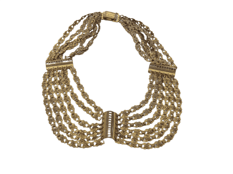 LOT 56 - Art Deco Dangle Swag Wide Collar Multi-Strand Gold Tone Necklace