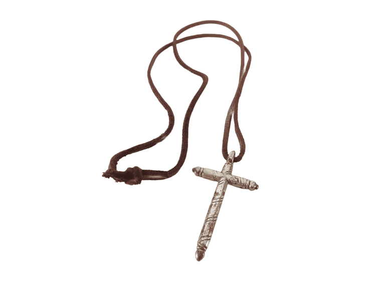 LOT 51 - Silver Tone Cross on 34" Leather Cord