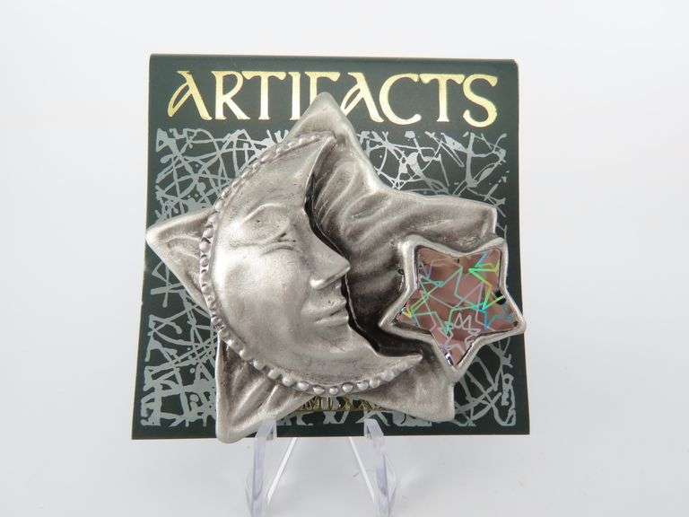 LOT 31 - New (1980's) JJ Jonette Artifacts "Moon & Stars" Brooch