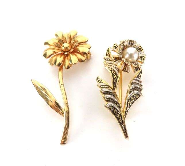 LOT 130 - Lot of 2 Gold Tone Floral Brooches