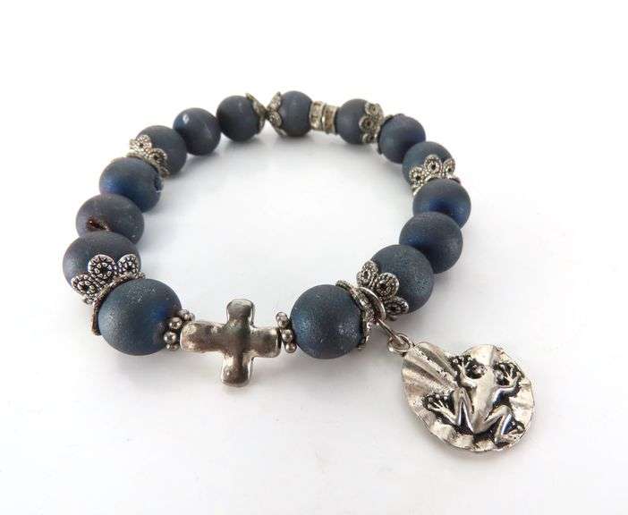 LOT 119 - Unique Stone Bead Bracelet with Frog Pendant