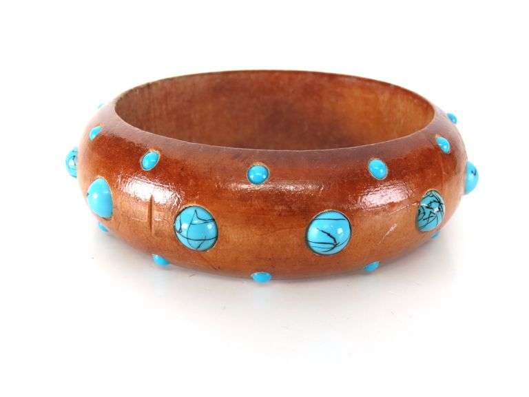 LOT 100 - Wooden Cuff Bracelet with Turquoise Accents