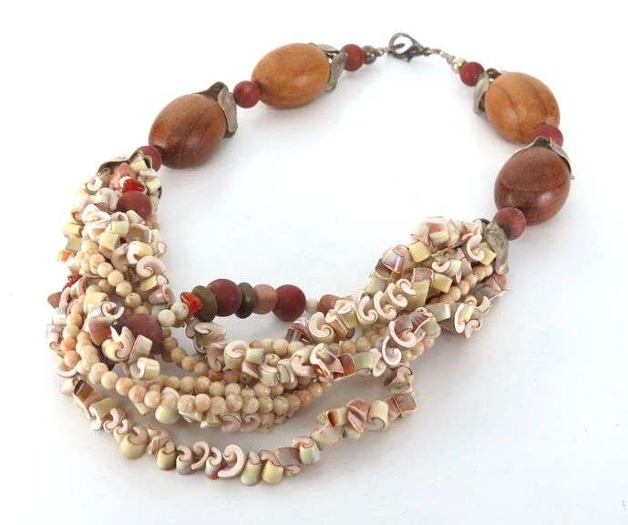LOT 97 - 18" Wood Bead & Shell Necklace