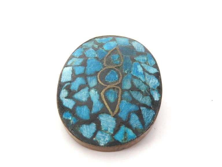 LOT 95 - Vintage Mosaic Turquoise Brooch / Pendant