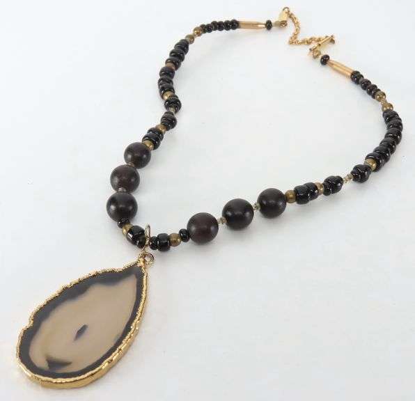 LOT 178 - 18" Beaded Necklace with Sliced Geode Pendant