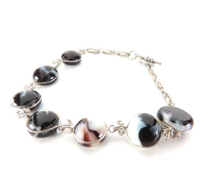 LOT 270 - 6" Wire Wrapped Black & White Banded Agate Stone Bracelet