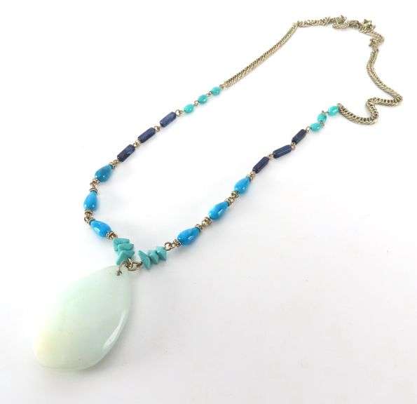LOT 264 - 32" Loft Beaded Necklace with Polished Stone Pendant