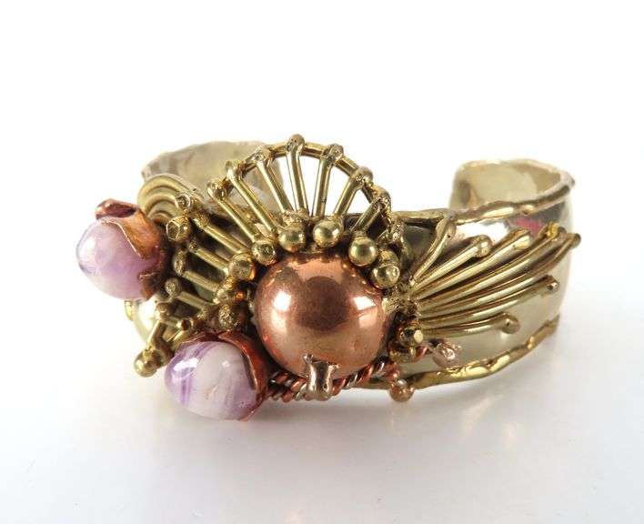 LOT 227 - Artisan Brass & Copper Open Cuff Bracelet Marked Mexico