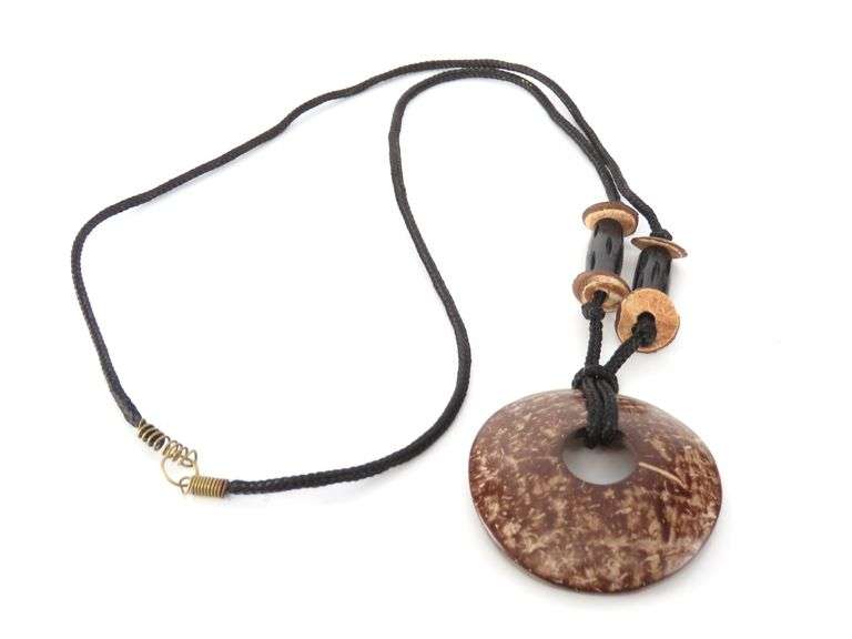 LOT 290 - 30" Fabric Cord Necklace with Wooden Pendant
