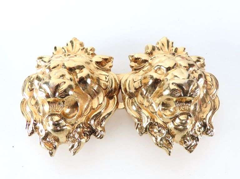 LOT 349 - Vintage Gold Tone Accesocraft Lions Head Belt Buckle