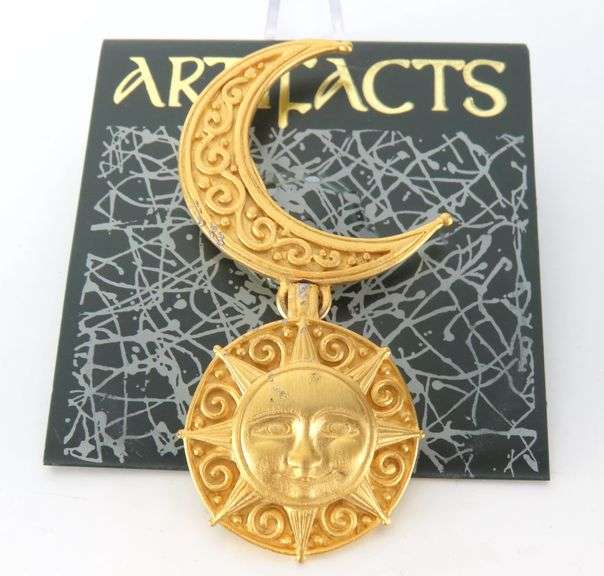 LOT 345 - New (1980's) JJ Jonette Gold Tone Artifacts "Moon & Sun" Brooch