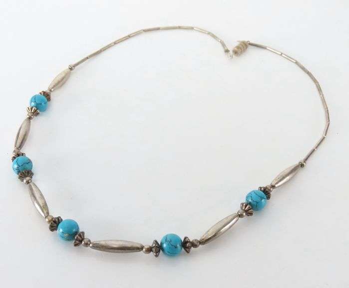 LOT 325 - 18" Silver Tone & Turquoise Necklace