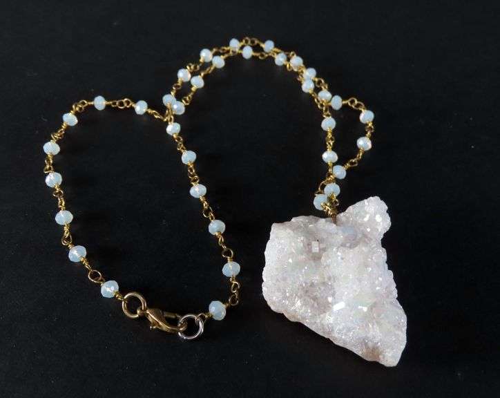 LOT 308 - Beautiful Raw Druzy Quartz Geode Pendant on 21" Beaded Necklace