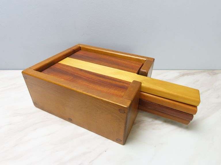 LOT 292 - 4 Wooden Handled Trays in Caddy Wall Hanging